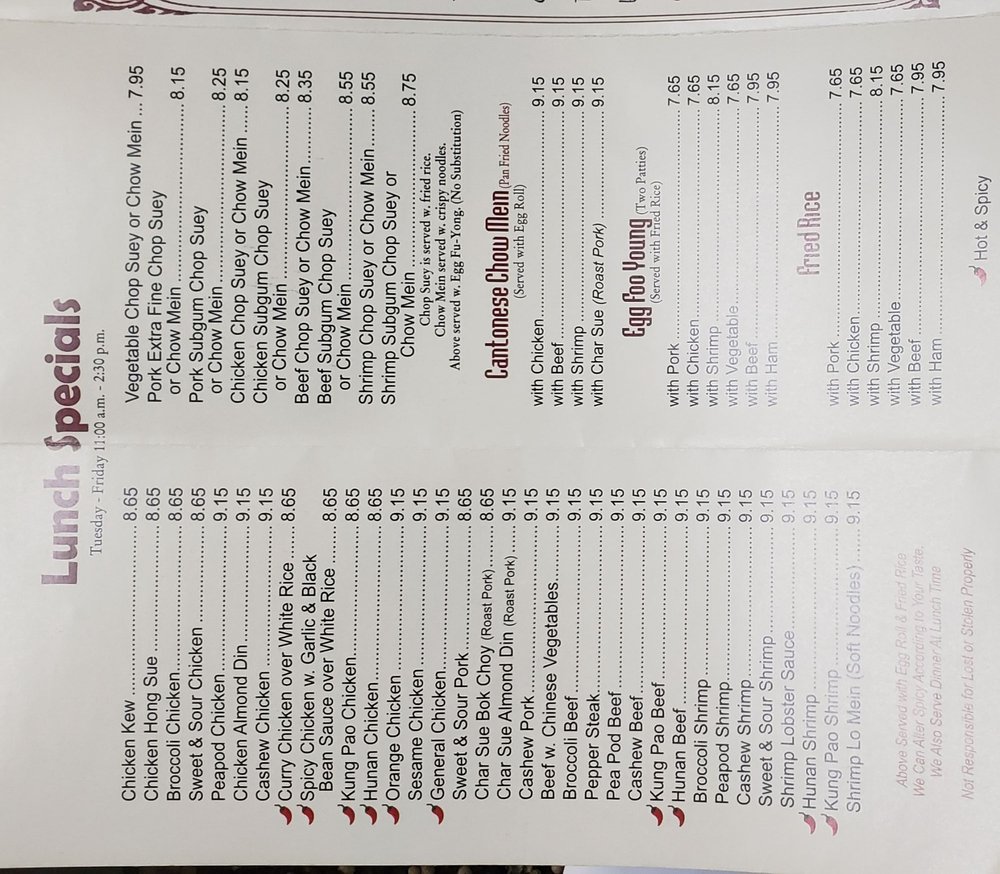 Cozy Inn Chinese Restaurant Menu (Update 2025)